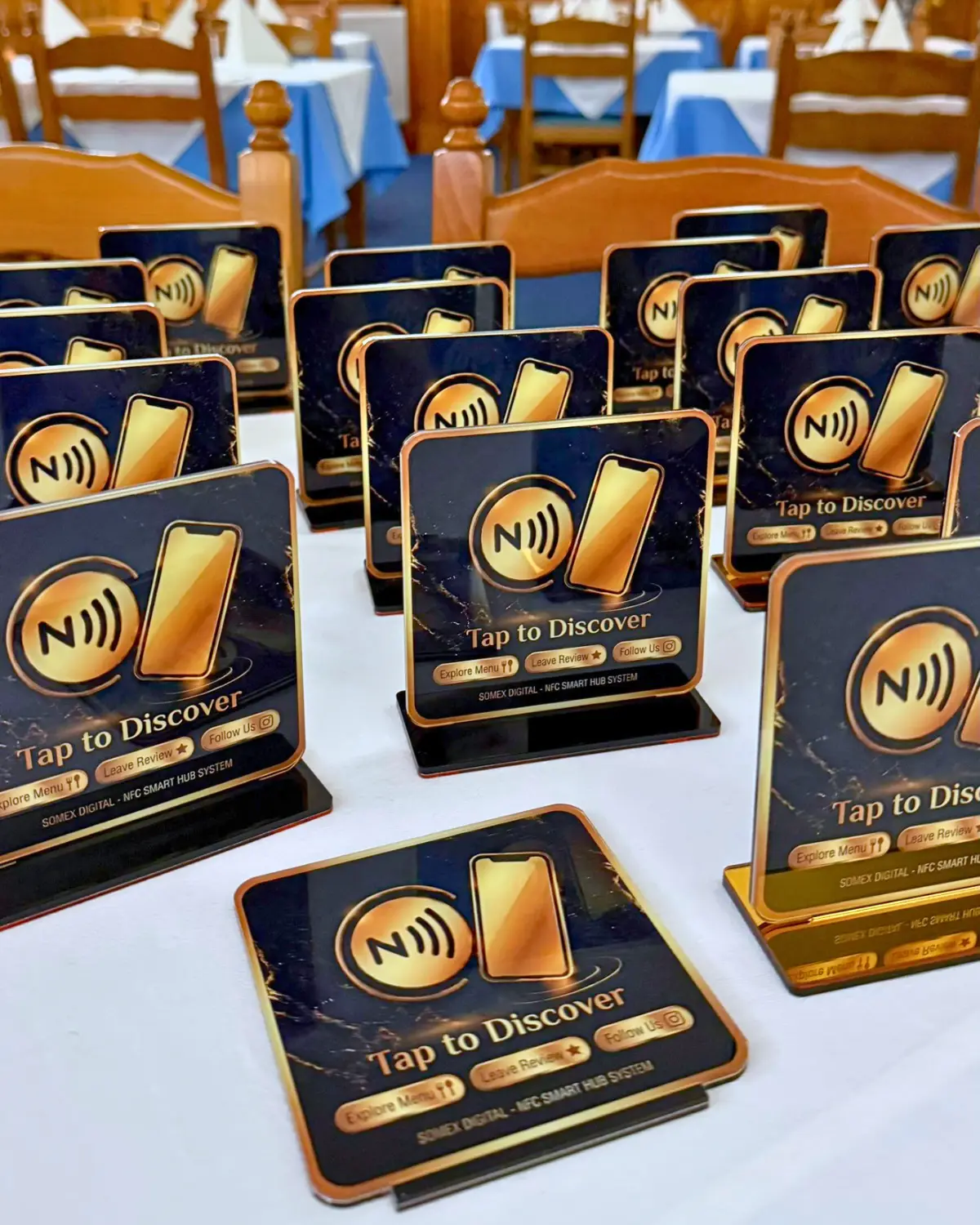 Turn every table into a smart hub. Multilingual menus, Reviews, and Social Media growth in one tap.